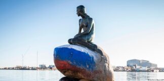 Denmark: Russian flag painted on Little Mermaid statue