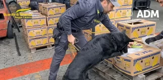 Italian police dogs find 2,700 kilos of cocaine hidden in a...