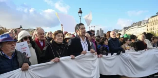 French artists lead a silent Paris march for peace between Israelis...