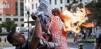 Man sets arm on fire to protest Israel’s war on Gaza...