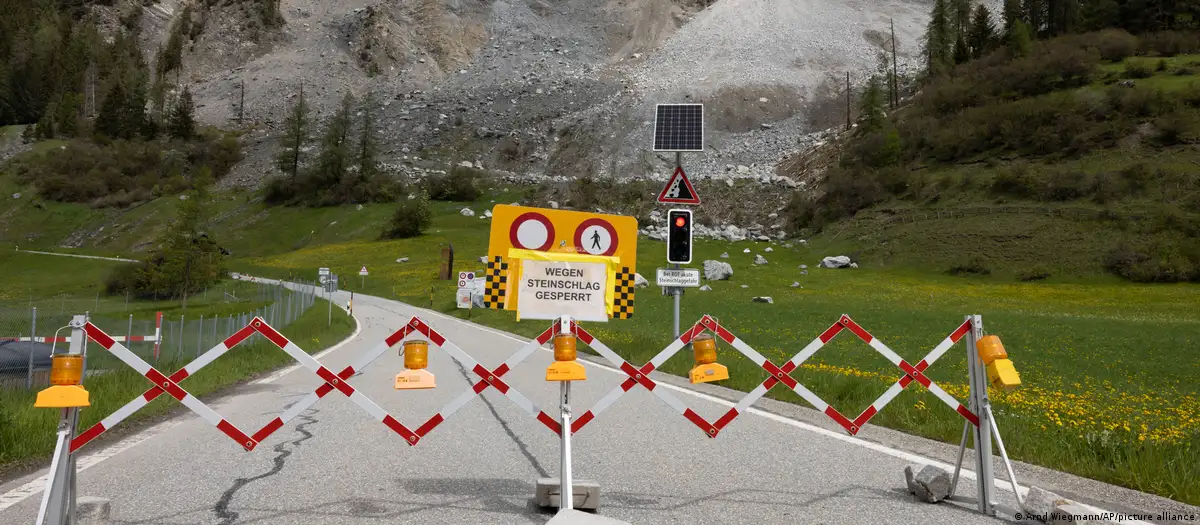 Two million cubic meters of fallen rock threaten the Swiss village of Brienz-Brinzauls, which was evacuated in May 2023Image: Michael Buholzer/KEYSTONE/picture alliance