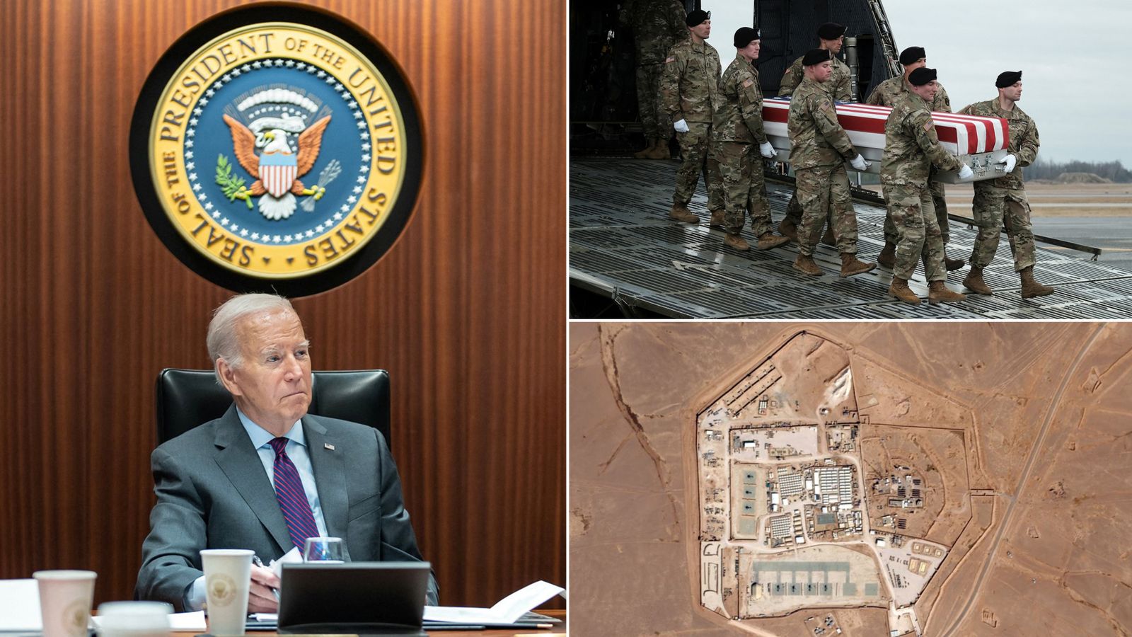 Joe Biden in the Situation Room, the dignified transfer of soldiers killed in Jordan, the military base known as Tower 22. Pics: The White House/Reuters/Planet Labs/AP