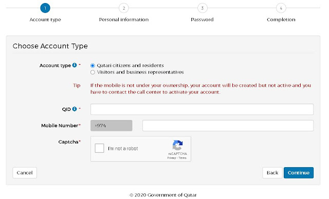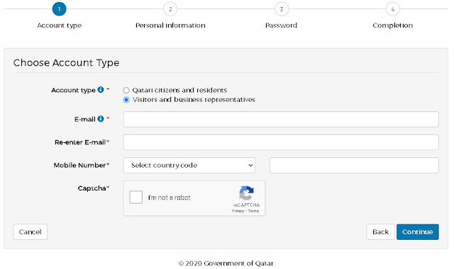 - Create a new account on Qatar Portal or Log in to your existing account (if available).