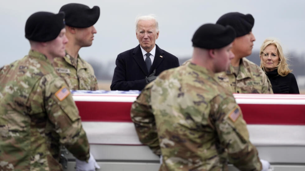 The initial strikes by manned and unmanned aircraft were hitting command and control headquarters, ammunition storage and other facilities. They came hours after Biden and top defence leaders joined grieving families to watch as the remains of the three Army Reserve soldiers were returned to the US during a somber ceremony at Dover Air Force Base in Delaware.