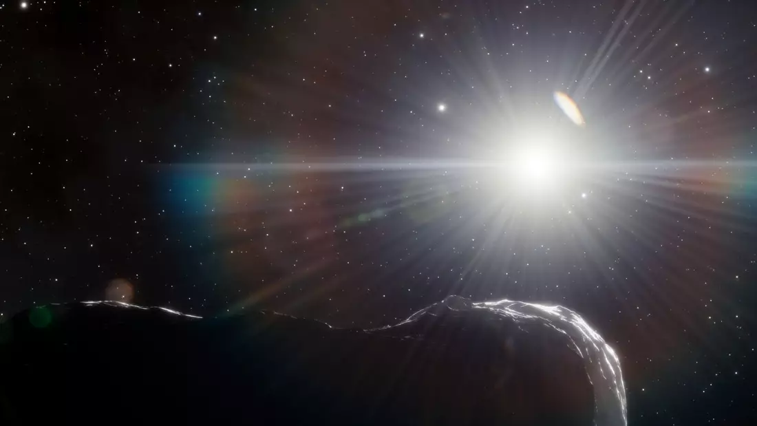 Artist’s impression of an asteroid that orbits closer to the Sun than Earth’s orbit. – Copyright DOE/FNAL/DECam/CTIO/NOIRLab/NSF/AURA/J. da Silva/Spaceengine