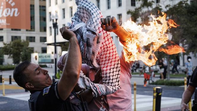 Man sets arm on fire to protest Israel's war on Gaza on its anniversary