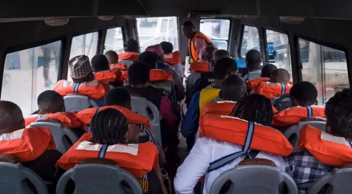 Passengers at Ikorodu ferry terminal inside the boat in Lagos on July 19, 2024.