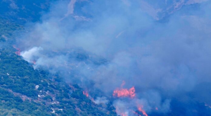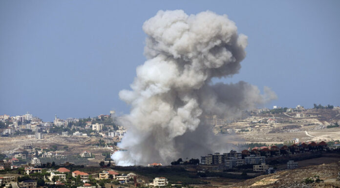 Smoke rising from villages after an Israeli shelling in the Nabatiyeh district, seen from the southern town of Marjayoun, Lebanon, Sept. 23, 2024 © AP / Hussein Malla