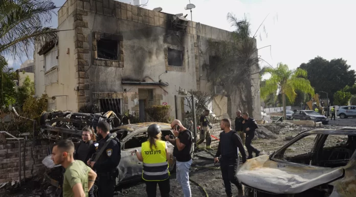 sraeli security forces examine the site hit by a rocket fired from Lebanon, in Kiryat Bialik, northern Israel, on Sunday, Sept. 22, 2024