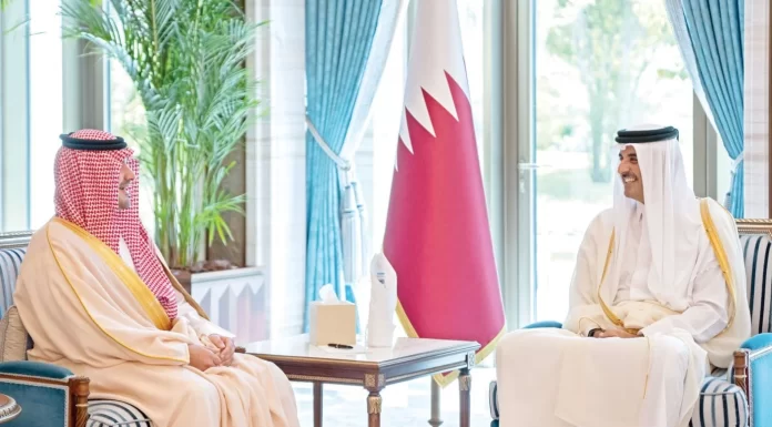 His Highness the Amir Sheikh Tamim bin Hamad Al Thani received at his office in Lusail Palace yesterday morning His Royal Highness Prince Abdulaziz bin Saud bin Nayef bin Abdulaziz Al Saud, Minister of Interior of the sisterly Kingdom of Saudi Arabia, and the accompanying delegation, on the...