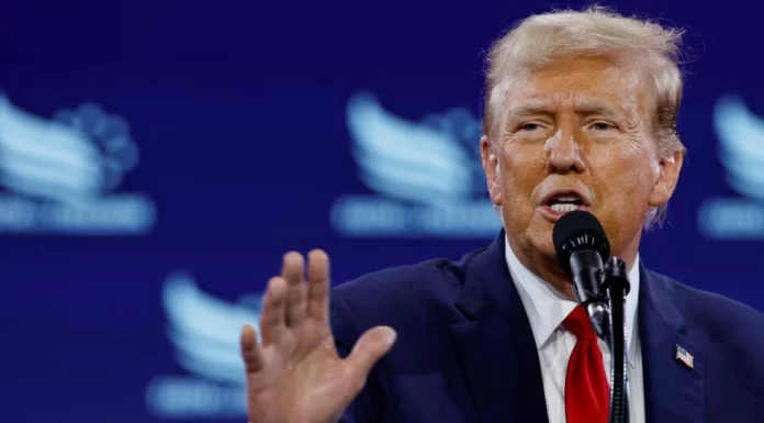 Former US President and Republican presidential candidate Donald Trump speaks at the Faith and Freedom Coalition's...