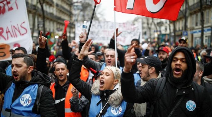 Scuffles erupt as Paris protesters rally against pension reforms ‘Yellow vests’ join rally of several thousand people against French government’s planned pensions shake-up