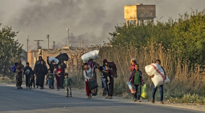 Air raids and artillery fire pound border region before Turkish troops cross into Syria east of the Euphrates.