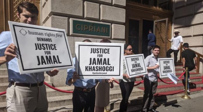 New York City - Protesters rallied outside an event hosted by Saudi Crown Prince Mohammed bin Salman's (MBS) charity in New York on Monday, calling for justice for Saudi writer Jamal Khashoggi who was killed inside a Saudi consulate almost a year ago.
