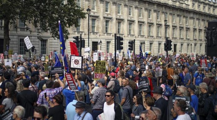 In London, thousands of angry protesters on Saturday rallied outside Downing Street, the official residence of the prime minister,...