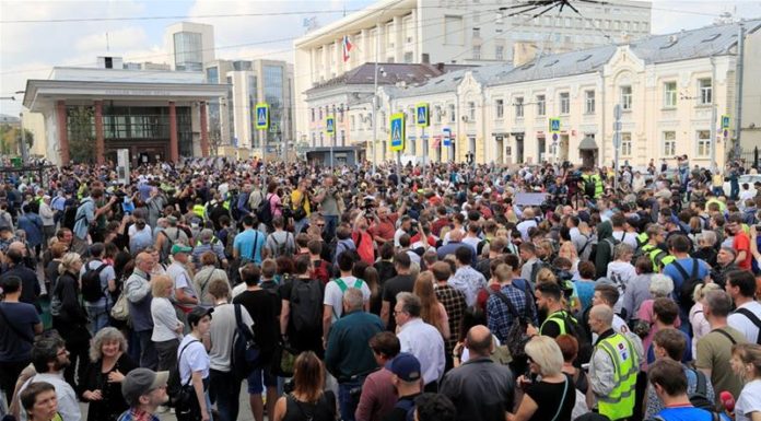 Thousands of Russians have taken to the streets of central Moscow to demand free elections to the capital's city legislature on September 8, defying a ban which has been enforced with violent detentions during previous protests.