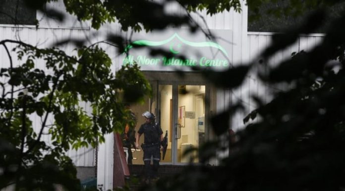 Gunman carrying multiple weapons was overpowered by members of the mosque before police arrived, witness says.