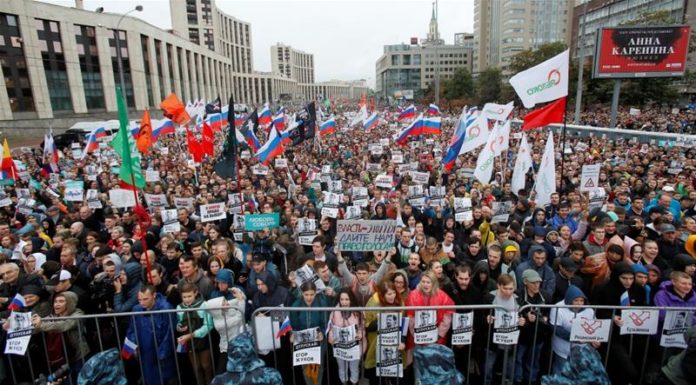 Tens of thousands of people demanding free elections have rallied in Russia's capital, Moscow, in one of the country's biggest political protests in recent years.