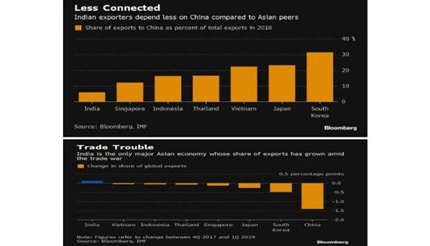 India’s share of world exports rose to 1.71% in the first quarter of 2019 from 1.58% in the fourth quarter of 2017, data compiled by Bloomberg show.