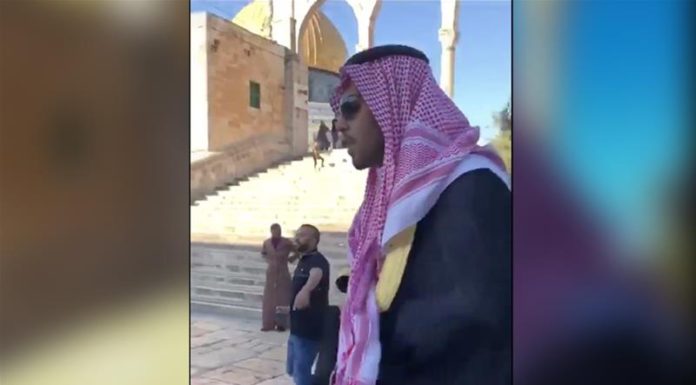 A Saudi man visiting the Al-Aqsa Mosque compound in occupied East Jerusalem as part of an Israeli-sponsored trip has been driven out of the site by Palestinians.