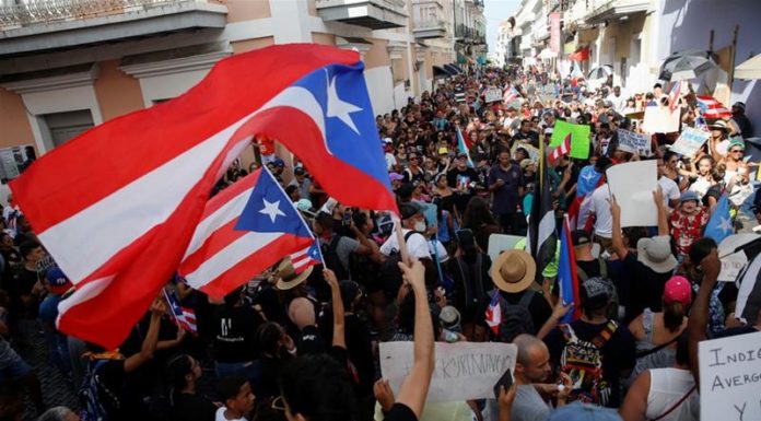 Thousands of Puerto Ricans, led by protesters on horseback with some banging drums and singing, marched on the governor’s residence demanding that he resign over hundreds of vulgar and offensive leaked chat messages.