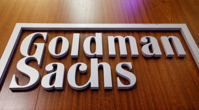 FILE PHOTO: The Goldman Sachs company logo is on the floor of the NYSE in New York