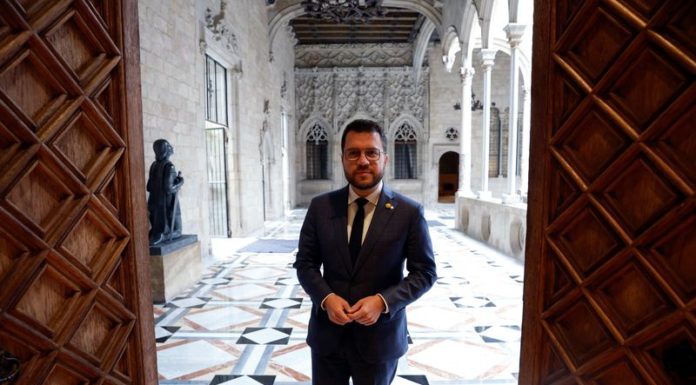 Catalonia’s regional head of government Aragones poses at Palau de la Generalitat in Barcelona