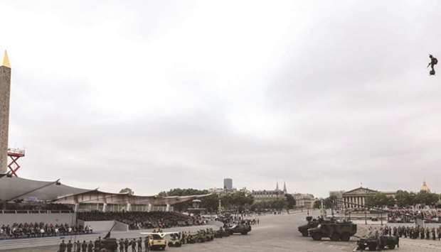 French President Emmanuel Macron showcased European military co-operation yesterday in a Bastille Day parade but the aftermath of the glittering event was tarnished by violent clashes between police and protesters.