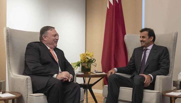 His Highness the Amir Sheikh Tamim bin Hamad al-Thani met with US Secretary of State Mike Pompeo at the Amir's residence in Washington DC Wednesday.