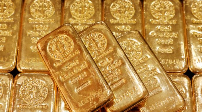 FILE PHOTO: Gold bullion is displayed at GoldSilver Central's office in Singapore