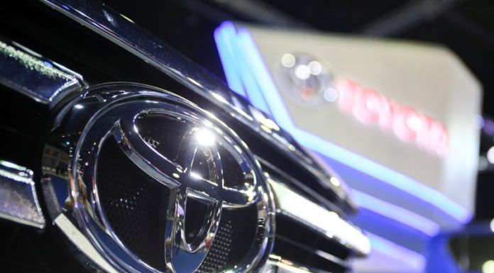 The logo of Toyota is pictured at the 38th Bangkok International Motor Show in Bangkok