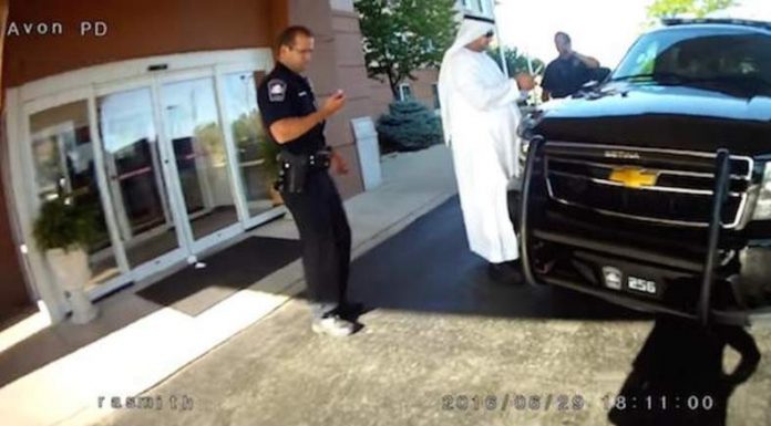 An Emirati businessman was hospitalised in the US state of Ohio after local police officers aggressively arrested him, and yelled at him to get on the ground, after a call was placed by a hotel guest claiming he had “pledged allegiance” to Daesh.