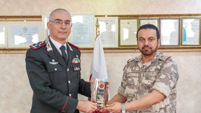 Military Police Commander Staff Major General Mohamed Messhi Al Ahbabi met with Commanding General of Italy’s Carabinieri Force, Giovanni Nistri and his accompanying delegation, currently visiting Doha.