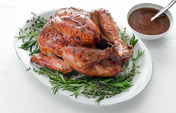 "Simple, perfect roast turkey just like grandma used to make. Seasoned with salt and pepper, and basted with turkey stock, the flavors of the turkey really stand out. Stuff with your favorite dressing."