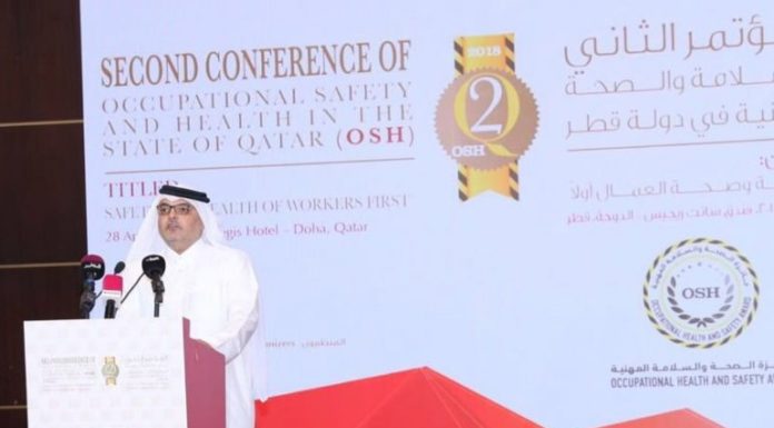 President of the Public Works Authority (Ashghal), Dr. Eng. Saad bin Ahmad Al Muhannadi at the opening session of the Second Occupational Safety and Health Conference.