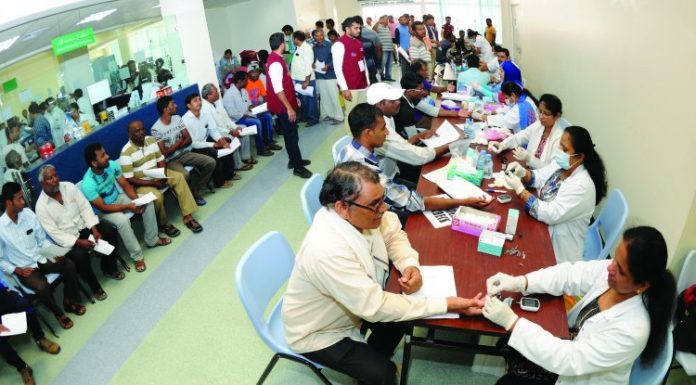 Medical staff and volunteers assisting the workers at the 34th Free Medical Camp organised by the Indian Community Benevolent Forum (ICBF) in association with the Ministry of Public Health, at the Medical Commission in Doha, yesterday. More than 1,500 workers benefitted from the free medical camp.