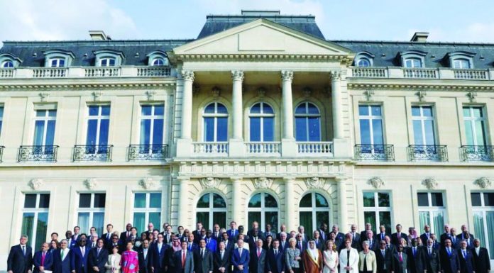Deputy Prime Minister and Minister of Foreign Affairs H E Sheikh Mohammed bin Abdulrahman Al Thani with other participants in the Paris Conference to Combat Terror Financing, in the French capital.