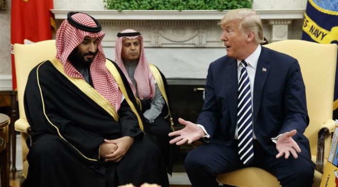 US President Donald Trump meets with Saudi Crown Prince Mohammed bin Salman in the Oval Office of the White House, on March 20, 2018,