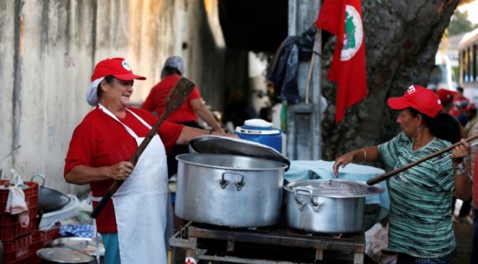 Supporters of former Brazilian President Luiz Inacio Lula da Silva cooking in a camp near the Federal Police headquarters, where Lula is imprisoned, in Curitiba, Brazil. April 9, 2018. Reuters/Rodolfo Buhrer
