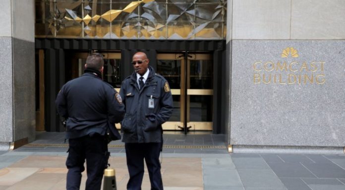 Police and security stand outside 30 Rockefeller Plaza, the location for the offices of US President Donald Trump's lawyer Michael Cohen which was raided by the F.B.I. today in the Manhattan borough of New York City, New York, U.S., April 9, 2018. REUTERS/Andrew Kelly