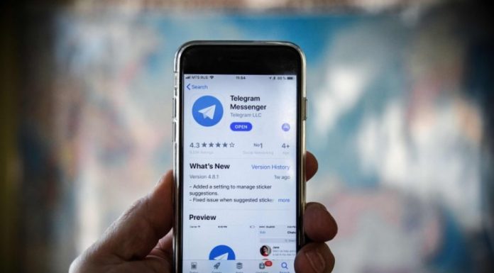 This file photo taken in Moscow shows a person posing while holding a smartphone with the Telegram messenger application on display. (AFP / Alexander NEMENOV)