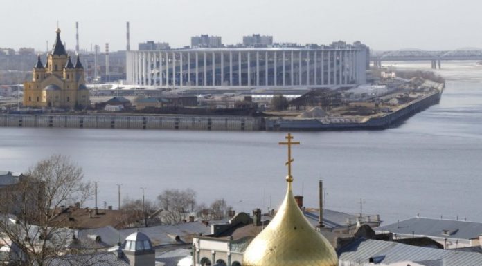 A view shows the Nizhny Novgorod Stadium (C, back), which will host matches of the 2018 FIFA World Cup, in Nizhny Novgorod, Russia April 9, 2018. REUTERS/Tatyana Makeyeva