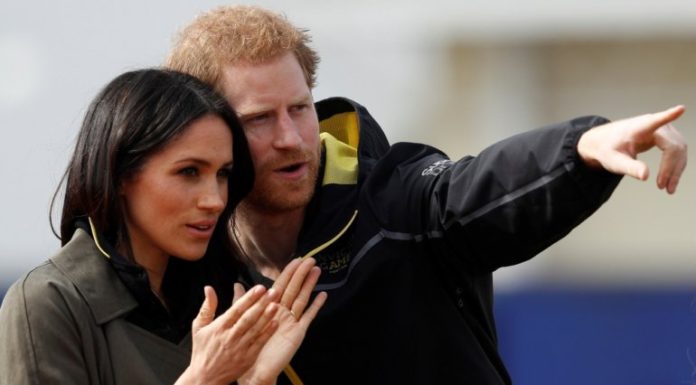 Britain's Prince Harry, Patron of the Invictus Games Foundation, and Meghan Markle watch athletes at the team trials for the Invictus Games Sydney 2018 at the University of Bath Sports Training Village in Bath, Britain, April 6, 2018. Reuters/Peter Nicholls