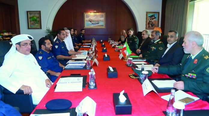 Director of Coasts and Borders Security Department, Staff Brig. (Navy) Ali Ahmed Al Badeed, with Commander of the Iranian Border Guards, Brigadier General Qassem Rezayee, at the meet.