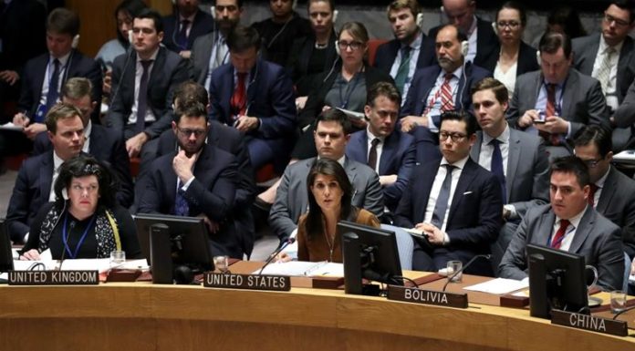 Nikki Haley, US ambassador to the United Nations, addresses the Security Council