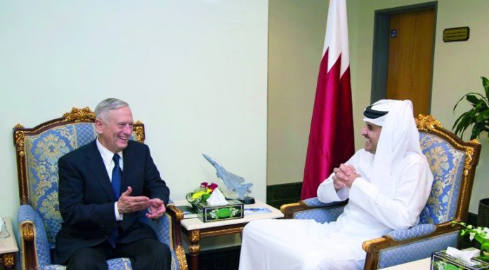 Emir H H Sheikh Tamim bin Hamad Al Thani met with US Secretary of Defence, James Mattis, and his accompanying delegation at Al Udeid Air Base, yesterday. The meeting discussed means to strengthen and develop strategic defence partnership and cooperation ties in the military field. It also reviewed both countries’ efforts in combating terrorism and...