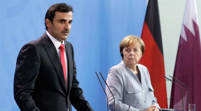 Qatari emir restates readiness to sit at the negotiating table during meeting with German Chancellor Merkel in Berlin.