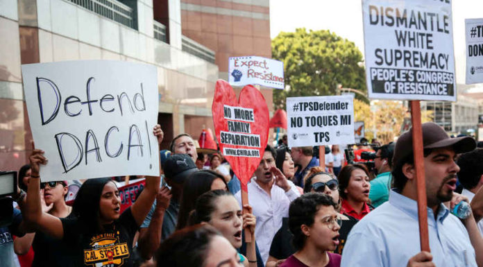 Protesters gather to show support for the Deferred Action for Childhood Arrivals (DACA) program recipient during a rally outside the Federal Building in Los...