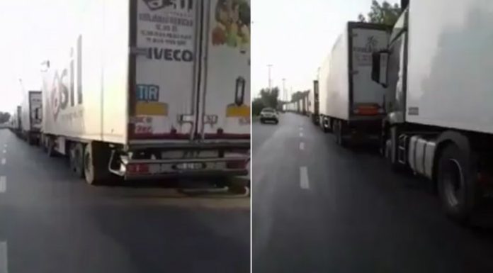 Trucks from Turkey to Qatar on the Iranian roads. Video still