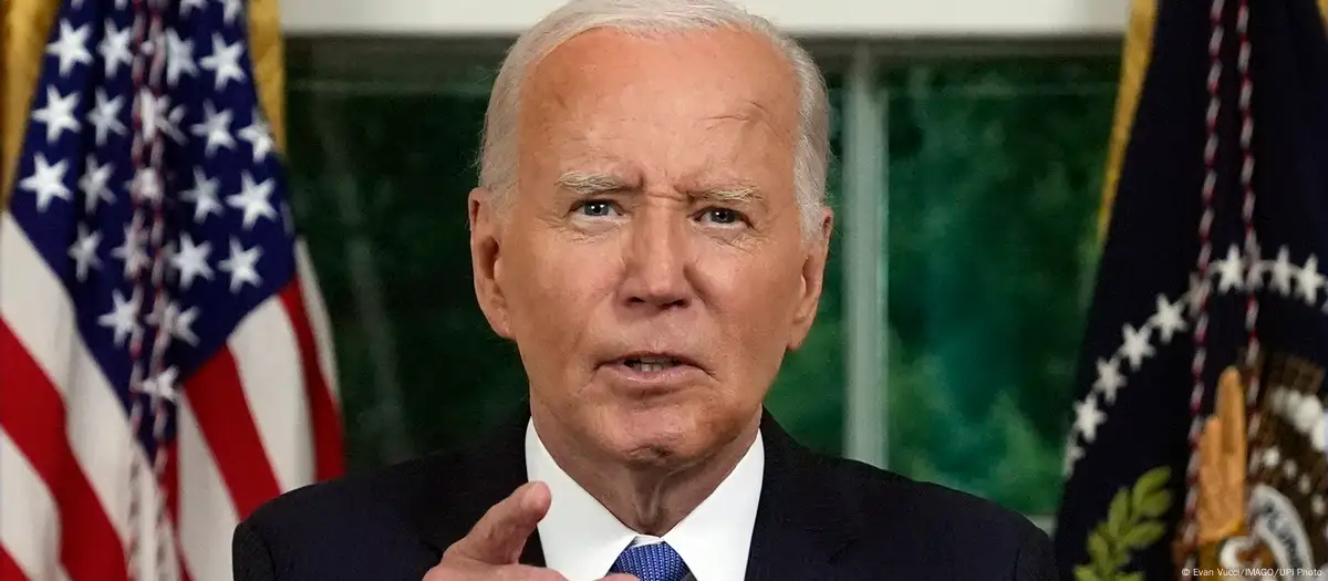 President Joe Biden addresses the nation from the Oval Office of the White House in Washington DC, USA, on July 24, 2024